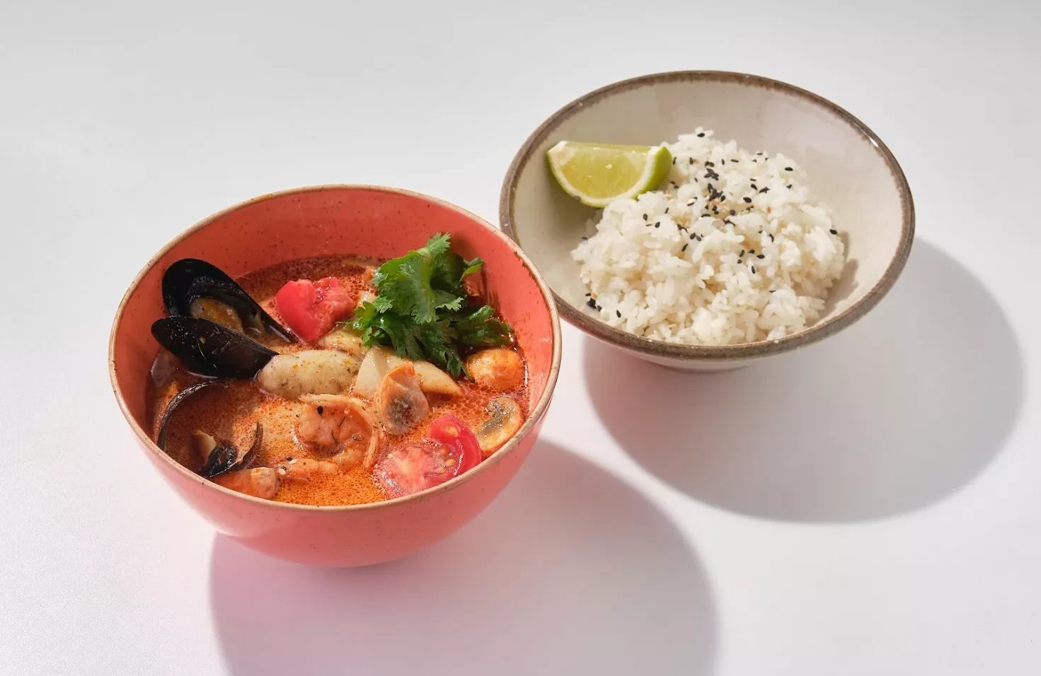 Тайский кисло-сладкий суп с морепродуктами и овощами